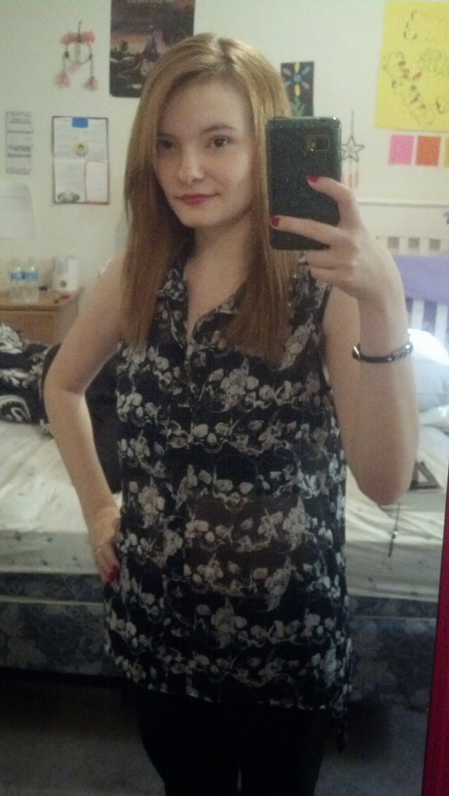 I am wearing bronze/golden eye shadow and darker lips. In the fall I like wearing golden eye shadow and darker lips.